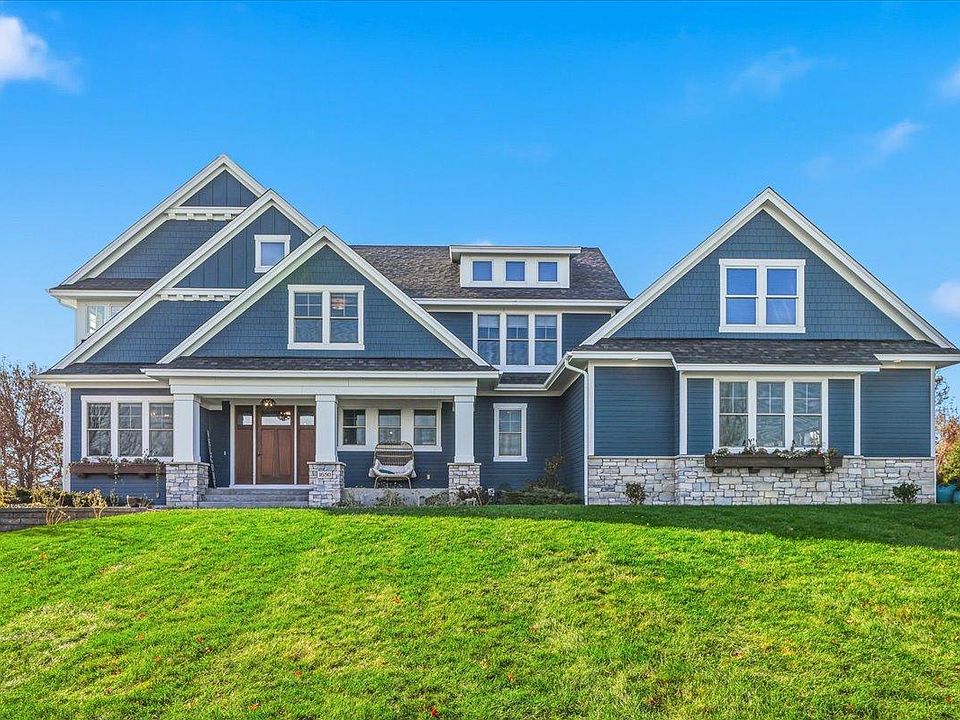 Nestled on a private lake, this stunning 4-bedroom, 4-bath home offers the perfect blend of luxury, comfort, and breathtaking views. Every detail has been thoughtfully designed with high-end finishes and exceptional craftsmanship throughout. Step through the grand front door and into the impressive living room, featuring coffered ceilings, a cozy gas fireplace, and panoramic views of the lake. Adjacent to the living room is a show-stopping kitchen complete with a massive center island topped with granite countertops, stainless steel appliances including a double oven and cooktop with overhead exhaust, and an expansive butler’s pantry offering ample storage and prep space. Just off the kitchen, the dining room provides yet another incredible lake view, while the adjoining three-season porch—with its own fireplace—creates the perfect setting to relax or entertain year-round. A spacious mudroom connects to the finished and heated 4-car garage, providing convenience and functionality. An elegant office and a stylish half bath complete the main level. Upstairs, the luxurious primary suite is a true retreat featuring a spa-like bathroom with a soaking tub overlooking the lake and a walk-in shower. Another bedroom includes a private bathroom, while two additional bedrooms share a beautifully designed Jack and Jill bath. The lower level is unfinished but thoughtfully planned, with rough-ins for an additional bathroom and walkout access to the scenic patio. Outside, you’ll find a backyard oasis—complete with an in-ground pool, lush landscaping, and serene views that make every day feel like a getaway. From the craftsmanship to the setting, this remarkable property delivers the ultimate lakefront living experience.
