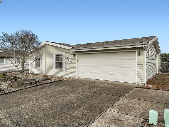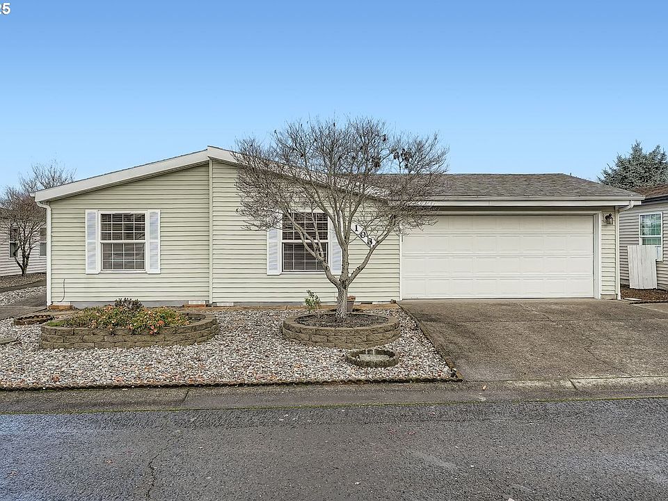 Premium gated community! Pristine condition manufactured home in Cascade Park Estates! No steps, and spacious and open ADA floorplan, with wide doors, roll in shower and lower counter in the kitchen. The low maintenance landscaping will make your life easy! Backyard has a covered patio, 3 year old shed, fully fenced, raised beds and backs to the beautiful park that is maintained by management. Take a walk in the park every day, with easy access path adjacent to home. New oversized heatpump in 2022, new furnace in 2020. Newer roof and vinyl siding. Laminate floors and vaulted ceilings, with electric blind. In-wall stereo with ceiling speakers. All appliances are included! Spacious 2 car garage with storage and a smart garage door opener. 55+ years of age park. Move in ready! UNIT 108