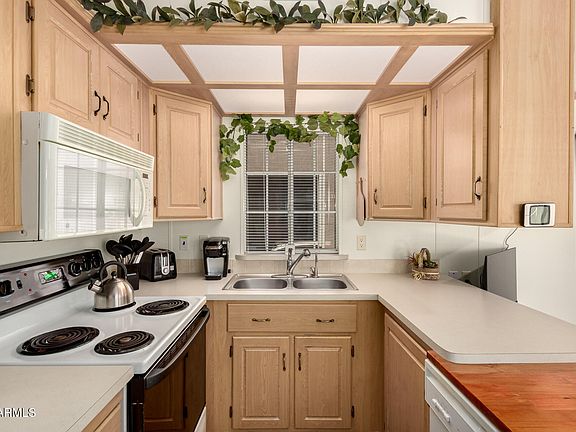 Welcome to this lovely manufactured home in the desirable Sunflower RV Resort! New roof with 4 years warranty still left. Inside, you'll find cozy living areas with wood-look flooring, tons of natural light, vaulted ceilings, and a soothing palette. The nicely sized kitchen features ample cabinetry and counter space, with built-in essentials. Get a restful sleep in the serene main bedroom, boasting a closet with mirrored doors and a bathroom. Extra large storage room. Great for adult toys or shop. Fill your days with fun activities in this welcoming adult community—visit the pool, spa, tennis court, clubhouse, and other amenities! What's not to love? Make it yours!