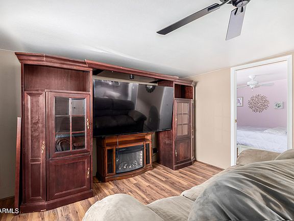 Charming 2-bedroom mobile home with 1 1/2 baths bursting with character! Inside, you'll find inviting wood-look floors and a cozy living room that's perfect for unwinding or hosting friends. The kitchen shines with matching appliances, vaulted ceilings, white cabinetry, and generous counter space plus handy built-in desks for your home office or crafting corner. Both bedrooms offer their own closets for effortless organization, while the stacked washer and dryer make daily chores a breeze. Enjoy a quiet community vibe with the convenience of being just minutes from the Agua Fria River, shopping, dining, and freeway access. What are you waiting for? Come and experience this adorable gem that's ready to welcome you home!