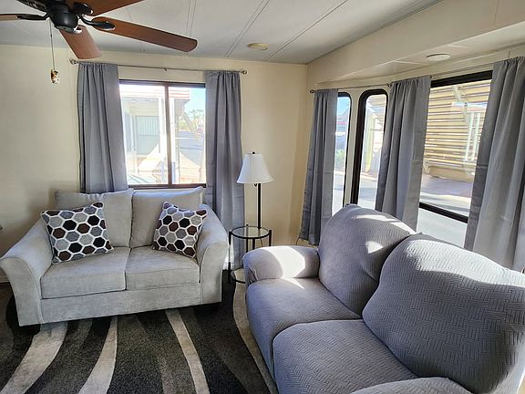2 Br 1 bath Park model for rent. Lots of amenities in the beautiful 55 + Park. 2 huge swimming pools, 4 hot tubs, huge gym. It also has lots of classes, yoga, Tia chi, jewelry making, wood shops, and putting golf. Pickle ball, horse shoes, and boche ball. Once you get here you will not want to leave. Tiki bar with band every night of the week. Bingo and trips to casinos. It is 1500.00 during off season call Glenn for more details