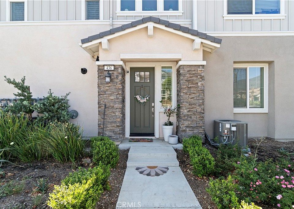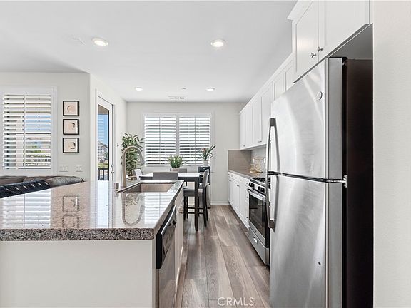 Welcome to this very sought after community of Gabion Ranch. This spacious upgraded condo has beautiful vinyl flooring, a open floor plan with an oversized granite countertop island with electrical outlets. The spacious primary bedroom has a upgraded designer wall, walk-in closet and dual sinks in the primary bathroom. This home has inside laundry. The garage has been upgraded with beautiful epoxy flooring. This home also has a balcony off of the kitchen for your morning coffee with great views. Community amenities include a pool, spa and lounge are and playground. This home has easy access to the 15 and 210 freeways, shopping, dining and parks. Don't miss the opportunity to own this fabulous condo.