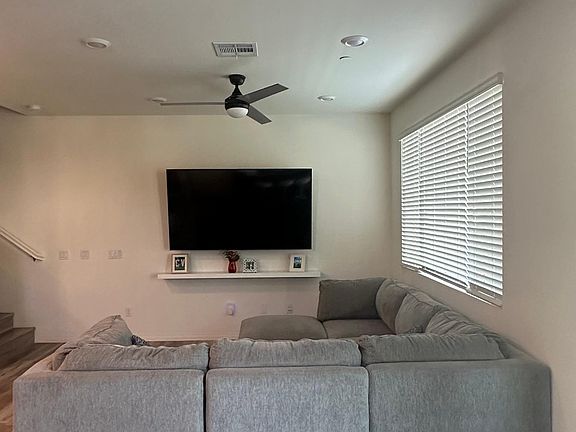 Beautiful newer home available for move in. 3 bedrooms, 3 full bathrooms, 2 car garage and all appliances included. Open public guest parking. Upgraded laminate wood flooring throughout the whole house. Kitchen includes plenty of cabinet storage, granite counter tops, single sink, stainless steel appliances, and pantry closet. The lower level includes an open kitchen and living room floor plan, a storage closet, one bedroom and one full bathroom. There is a gated private patio. The second level includes one bedroom with an attached full bathroom with a bathtub and shower, laundry room with stacked washer and dryer, and owner's suite with a walk in closet and full bathroom with dual sinks. This property has multiple community pools with barbecues, splash pad, jacuzzi, fire pit, cabanas, and club house. This property is located near many playground parks, and dog parks. This property is located near shopping plazas, grocery stores, and restaurants.