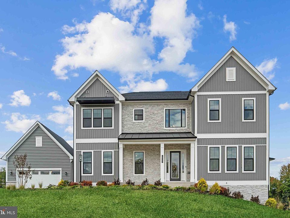 MARSHALL’S LANDING- QUICK MOVE-IN HOMES. Welcome to your new estate home- The Hampton. This home includes 6 bedrooms/6.5 baths/4-car garage with finished basement and main level suite. This exquisite home is positioned in a cul-de-sac and sits on a serene 2.13-acre homesite offering unparalleled privacy. The contemporary exterior elevation is complete stone, siding, covered porch, sleek black trimmed windows, and metal roof. The elegant 2-story foyer will take your breath away. A flex room to use as you would like would make a perfect home office. The dining room will provide you years of entertainment. The rich oak staircase and owner entry are adjacent to the foyer. The Pro-Kitchen with high end Kitchen Aid appliances to include a built-in french door refrigerator, dishwasher, 6-burner gas range, microwave/oven combo and built-in commercial grade hood vent. An abundance of cabinet space to include a built-in pantry with roll-out shelves and over-sized island with cabinetry on all sides. A beverage center is in the extended kitchen. The breakfast nook is positioned to the side. The kitchen, breakfast nook and family room provide plenty of space and airiness for everyday living as this is the hub of the home. From the kitchen views are to the foyer, dining, room, flex room, and family room. Contemporary grey cabinets are throughout the kitchen with gleaming quartz counters. Easy to maintain solid surface flooring is throughout the main living area. The soaring 10-foot ceilings allow for 8-foot doors throughout the first floor. Enjoy soaring views of the meadow from the double 8-foot sliding glass doors. Also included is a 60” Crave gas fireplace for a cold winter day. The solarium is a sanctuary of tranquility filled with bountiful light. From the owner entry a main level bedroom with private bath and walk-in closet is positioned. The owner entry provides plenty of space for a drop-zone with cabinets for storage. The 4-car garage includes an EV plug along with door openers and exterior keypads for convenience. A grand oak staircase with metal balusters lead to the upper level with a primary suite, 4 bedrooms, laundry room and plentiful storage. The primary suite is spacious with room for a sitting area with 2 separate walk-in closets- no need for sharing! Enter the opulent primary bath through double doors and view the glass walk-through ceramic tile shower and soaking tub as a focal point. Separate comfort height vanities with an abundance of storage and quartz counters are adjacent with plenty of floor space. 3 additional generous rooms grace the upper level of this home, each with sizeable walk-in closets and private baths. All secondary baths include ceramic tile, upgraded soft-close cabinets and quartz counters. For convenience, the laundry room is on the bedroom level with cabinets, utility sink and a linen closet for storage. The walk-out basement provides plenty of natural lighting and is complete with a recreation room, bedroom, a full bath, and additional finished area below the solarium- perfect for a home theater. Additional finished storage closets are in the basement. The unfinished portion allows for storage or can be finished in the future for additional rooms! Stay connected to your new home through our smart home package to include door camera, z-wave door lock, z-wave thermostat, IQ Panel and Echo pop. Light switches throughout are by Deako- plug and play modular switches to easily add motion sensors or dimmer switches on your own. Many area conveniences include the new South Lake shopping center. Perfect for commuting this location has quick easy access to Rt. 301, Rt. 50 and Rt. 4 to Washington, DC, Annapolis, or Baltimore. We can’t wait to welcome you to your new home!
