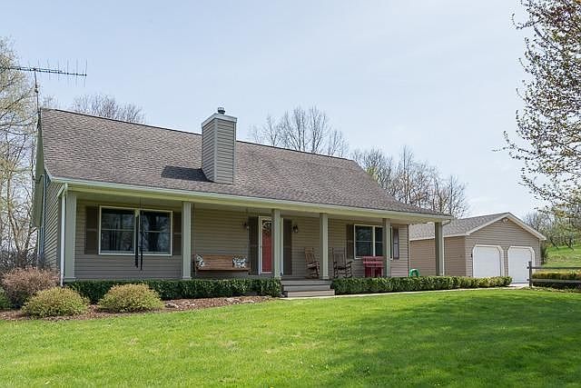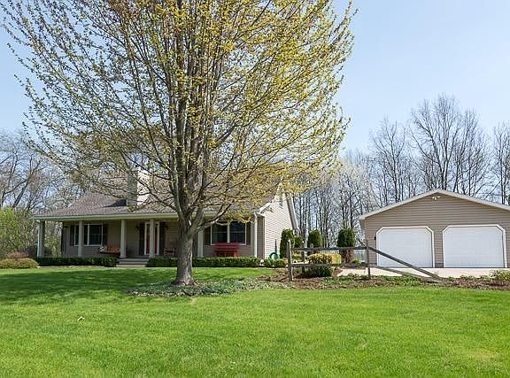 Meticulously Maintained best describes this stunning 4 bedroom cape cod with a full basement partially finished with a workshop on 10 rolling, wooded and panoramic acres. Many features include: a main floor master suite with large closets, gourmet kitchen with granite counters and center island along with stainless steel appliances, high efficiency wood burning stove, main floor laundry room. The finished basement has a gas firplace, 2.5 car garage and a gorgeous above ground pool- perfect for family fun! Enjoy the beautiful sunsets and watch the deer and turkey from the privacy of your expansive rear deck! All appliances included!