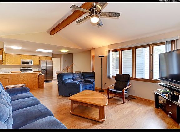 You must see this sprawling 3 step ranch to appreciate all it has to offer!! Kitchen, with stainless steel appliances, opens to gorgeous Family Room with cathedral ceiling and wood burning fireplace - has gas hook-up too. Formal Living and Dining Rooms are spacious and inviting. Generous sized Master Suite features luxury whirlpool tub and separate shower. Main floor laundry has cabinets galore. No shortage of storage in this home! You won't believe the size of this Enormous, Extra Deep, Basement with well over 2000 square feet of additional space, including work shop and storage room. Pool table stays! Wait until you see this Awesome 3 Car Garage with an extended bay and 8 foot doors. Plenty of room for your grown-up toys!! The newer asphalt driveway has plenty of room for parking. Enjoy the privacy of the fenced-in yard. This well maintained home has a freshly painted interior, newer roof, water heater and 2 sump pumps. It's just minutes from 55. Nice home in a great neighborhood!!!