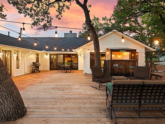 Stacked stone fireplacePatio accessTree-shaded backyardNew ac unitBrand-new lightingRich wood floorsGranite kitchen