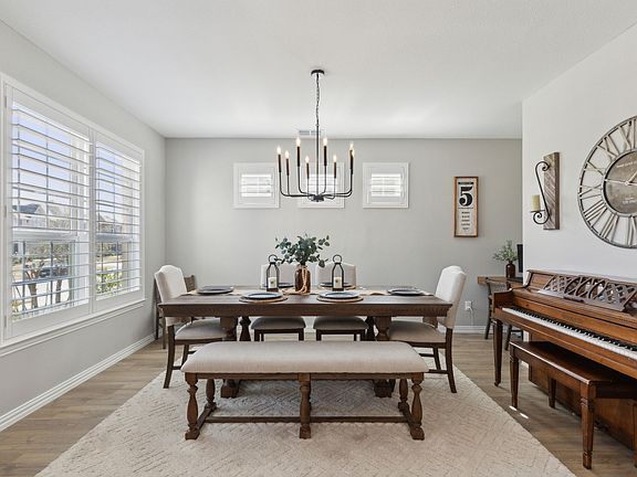Inside, soaring ceilings, abundant natural light, and plantation shutters create a bright and inviting atmosphere. The open-concept living area showcases a striking stone fireplace and flows seamlessly into the kitchen and breakfast nook, both offering picturesque views of the backyard retreat. The expansive kitchen is a chef’s dream, complete with a gas cooktop, oversized island, and ample storage.
