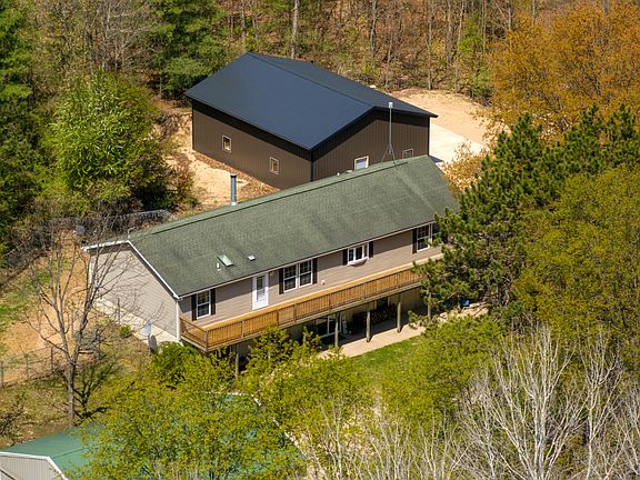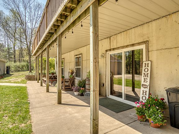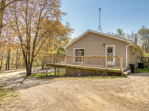 Tucked away on 4 wooded acres at the end of a quiet dead-end road, this spacious ranch offers the perfect mix of privacy and functionality. With 6 bedrooms, 2 bathrooms, and a framed-in 3rd bath ready for your finishing touch, there's room for everyone. Two large living areas, including one with a cozy wood-burning fireplace, provide plenty of space to relax. The walkout basement leads to a covered outdoor entertainment area—ideal for gatherings. The main level features the primary suite, two additional bedrooms, laundry with a dog-washing station, and second full bath. Downstairs offers three more bedrooms. Two pole barns, including a brand-new 3-stall garage, offer all the storage you'll need. A rare find just minutes from Morley and US-131!