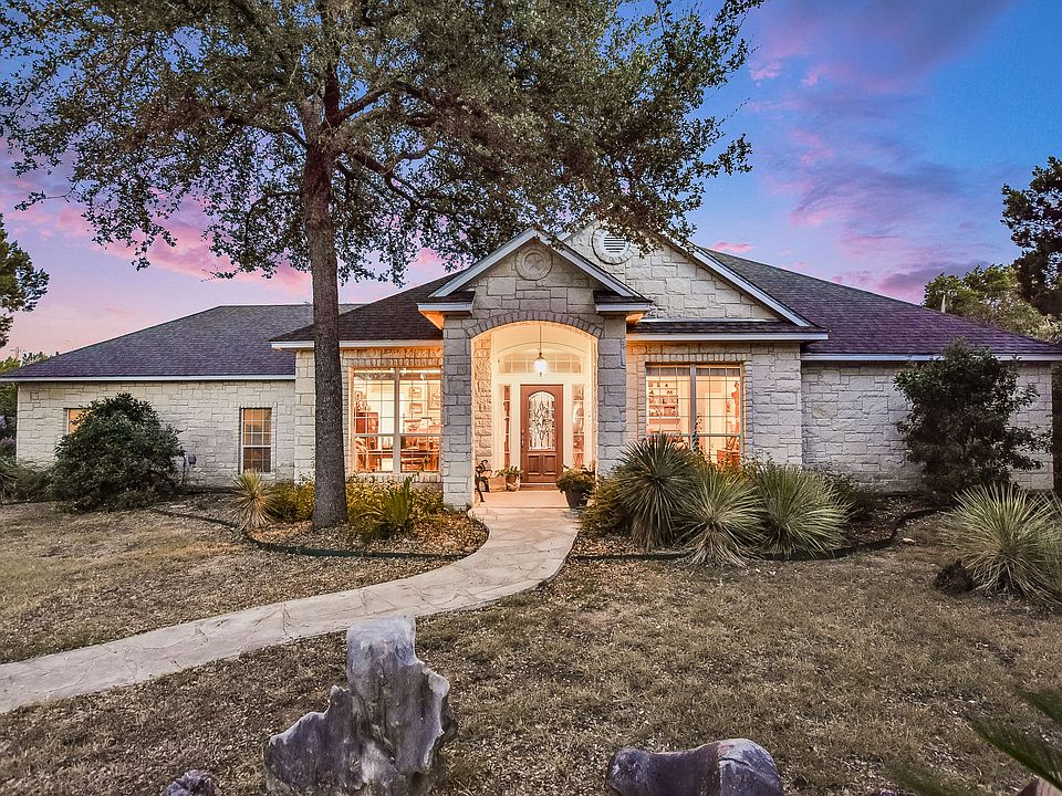 Nestled in the heart of the Hill Country is this little piece of Heaven. Native hardwoods and abundant wildlife surround this lovely home. The large covered back porch, overlooking the inviting pool area, and the private backyard is an ideal place to enjoy your morning coffee, relax with a glass of wine or root for your favorite team on the outdoor TV. The kitchen boasts custom wood cabinets, granite counters, stainless steel appliances, and a large walk-in pantry. The living room features crown molding and a welcoming fireplace making this the perfect place to spend countless hours entertaining family and friends or relaxing. The large master retreat, a dining/office/or card room, and three additional bedrooms complete this beautiful home. The gated community of Vista del Rio offers a unique park-like setting. For a small fee, community stables are available for horse boarding, and an efficiency apartment for those overflow guests.
