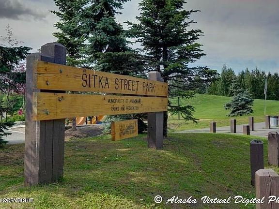 Top floor, sunny south-facing condo in desirable Eastridge community. Spacious, 2 bed w/nice size living room, large breakfast bar for entertaining & great kitchen counter space. Warm custom wall colors & lighting throughout. Enjoy awesome views of the Chugach mountains from the deck or kick back on cooler nights in front of the cozy fireplace. Close to trails & Sitka Park less than a block away.
