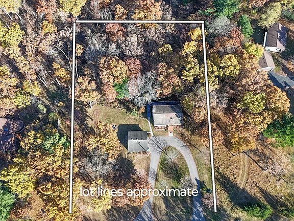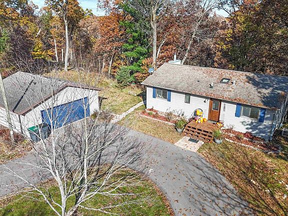This property delivers far more than comfortable living, it offers lifestyle and long-term potential. Set on 1.47 acres in the Lake Arrowhead Association land with deeded lake access, the home sits tucked into mature woods offering privacy and beautiful seasonal color while still providing a sweeping, usable yard ideal for large family gatherings, pickup football on Thanksgiving, summer cookouts or a neighborly fire pit evening. Multiple outdoor living zones, a large upper deck off the kitchen, a lower concrete walk out patio and generous lawn, create purposeful spaces for dining, sunning, gardening or stargazing. A detached two-car garage and U-shaped driveway add practical storage and easy guest access. Inside, an open main level with vaulted ceilings and wide sliding doors fills the living and dining area with natural light and frames the wooded views. The kitchen features warm oak cabinetry, an island for prep/casual meals and newer appliances, with direct access to the deck for effortless indoor/outdoor entertaining. Two main level bedrooms and a full bathroom provide com
