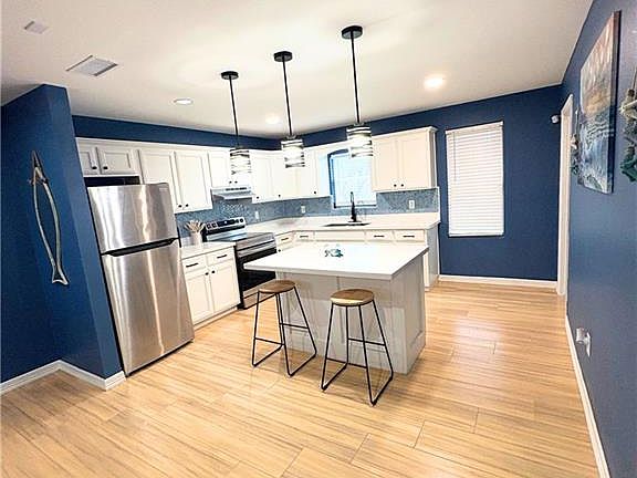 Step inside and enjoy a modern, functional split layout featuring stylish updates throughout. Fully renovated and fully furnished 3-bedroom, 2-bath home on a spacious corner lot in the heart of Port Isabel! This move-in-ready property features modern updates throughout, and includes kitchen appliances, washer, and dryer. Each room comes furnished with beds, TVs, and a cozy living room set. Enjoy the covered rear patio overlooking a fenced backyard on over a quarter-acre lot with a large shade tree. Plenty of parking for multiple vehicles or boats, plus a double gate with backyard access. Located walking distance from a city park offering bay fishing, BBQ pavilions, a new playground, clean restrooms, and parking. Excellent location close to shopping, dining, schools and ONLY MINUTES from South Padre Island—perfect for full-time living, a vacation retreat, or an investment property! Enjoy relaxed coastal living and modern comfort where everything you need is already here.