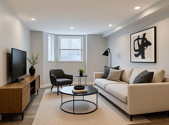 Modern finishesContemporary fixturesUpdated bathroomSleek stainless steel appliancesBrand-new kitchenQuartz countertopsNew hardwood-style flooring