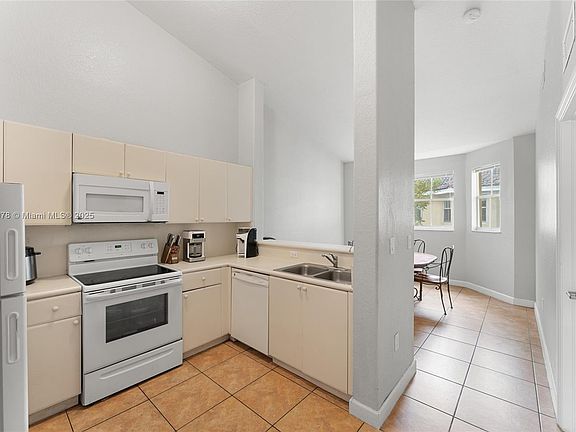 Welcome home to this bright and spacious 2 bedroom, 2 bathroom condo! Enjoy high ceilings, natural light throughout, a formal dining area, and a split floor plan for added privacy. The unit comes equipped with new a/c, new microwave, new dishwasher will be installed, hurricane shutters and an in unit washer and dryer. Enjoy the new bathrooms with walk in showers, new flooring and new vanities. Located in a gated community with 2 pools, 24/7 security, patrolled security, 2 assigned parking spots and plenty of guest parking. Close to the Florida Keys, a new Publix and world class shopping.