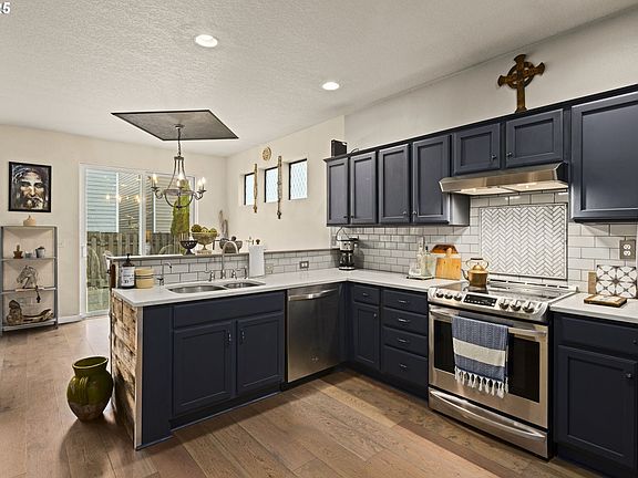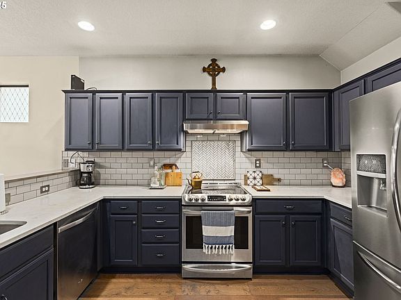 Step into a home where design meets soul. Lovingly upgraded by an artist and interior designer, every corner of this Troutdale Property tells a story. From the warm European Oak wood floors to the handcrafted tile fireplace, this home blends modern comfort with timeless, artful touches.The kitchen is a showstopper — featuring quartz countertops, custom cabinetry, stainless steel appliances, a filtered water faucet, and a stunning Carrera marble herringbone backsplash above the stove. The main level is bright and open, ideal for entertaining or peaceful everyday living. Upstairs, the spacious bedrooms offer comfort and style with designer carpet, and ceiling fans. The primary suite is a true retreat with a custom tray ceiling, PVC shiplap and elegant fixtures throughout.Enjoy morning coffee or evening gatherings on the 18x10 pebble concrete patio, with room to garden, play, or unwind. Located near Historic Downtown Troutdale, shops, and just minutes from the Columbia River Gorge — this home is the perfect blend of function, beauty, and location.