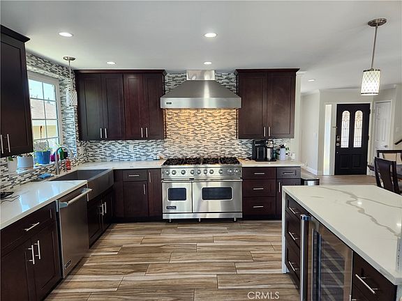 Large 4 bedroom & 4 Bathroom pool home in the heart of La Habra. This home was made for large families or even make part of it into an ADU? Freshly painted and ready to move in. The home has 2 master bedrooms upstairs (one with a fireplace) and a large bonus room downstairs that can be made into a large bedroom. The main master bedroom has walk-in closet and an office area with balcony looking over pool. There is a living room, family room and dining area for your enjoyment. The home boasts new interior paint, baseboards, crown molding, recessed lights and wired for sound. There is a large open kitchen with plenty of upgrades including newer cabinets, stainless-steel Viking appliances (built-in refrigerator, wine frig, commercial style range with hood and dishwasher). There are also quartz countertops with custom tile backsplash. There are lots of windows, French doors and sliders that make the home very light and bright. Multiple decks and balconies for entertaining your guests! There is a great Laundry room near the 2 car garage for convenience. The home also has a leased solar system from Solar City (Tesla) that goes till 2035 and buyer will need to assume. The solar lowers the homes electrical bills quite a bit. The home is within walking distance to shopping, restaurants, parks and entertainment. This will not last long. Lowest priced per square foot pool home in the area!!