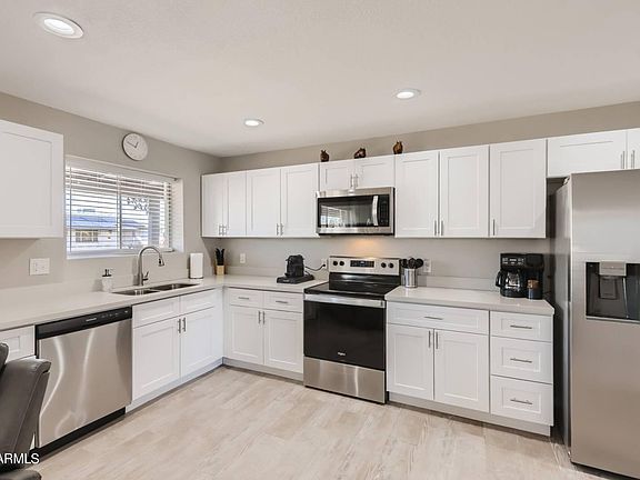The heart of this home undoubtedly lies in the kitchen. Here, you'll discover stunning white quartz countertops that elegantly complement the modern white cabinets. Updated hardware adds a touch of sophistication, and the ample storage space ensures your culinary adventures are well-equipped. Brand new stainless steel appliances add to the appeal, making this kitchen a true gem for any home chef.