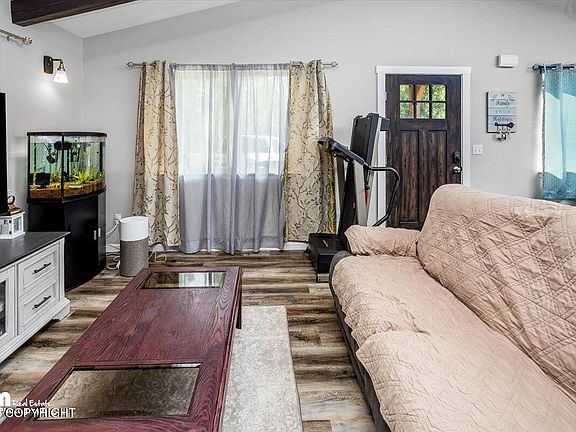 This 2019 custom Alaskan cottage home by Premier Valley Homes is beautiful! With over an acre of land this one is a must see. This home delivers!! Boasting high ceilings and exposed wood beams. With a rustic farmhouse meets industrial look the touches and details are on point. The home has an open layout between the kitchen to living and is full of charm and personality.Complete with two bedrooms, one large bathroom with his & her sinks an oversized bathtub, LVP flooring, tile backsplash, hanging lights, shiplap ceiling in the main bedroom, WIC, kitchen island with ceiling fans, dining area and all kitchen appliances stay with the home. There's a fully fenced dog yard and space to store your Alaska toys. Just minutes from Wasilla shopping and about 45 minutes to Anchorage