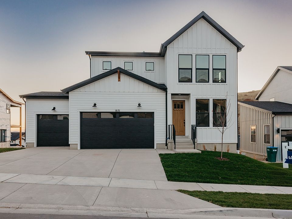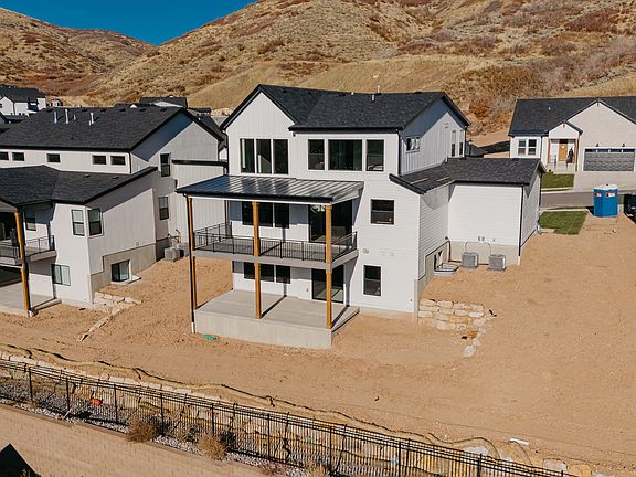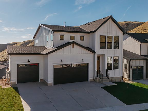 Just Completed and ready for move-in!! Stunning Summerwood Farmhouse in Canyon Point! This beautifully designed 5-bed home is set in the prestigious Canyon Point community on Traverse Mountain. The eye-catching white farmhouse exterior with black windows makes a bold first impression. Enjoy breathtaking mountain and valley views from your walkout basement and spacious main level covered deck. Inside, you'll find a light-filled 2-story great room, gourmet kitchen with double ovens, 5-burner gas cooktop, 8' island, quartz counters with a thick-edge profile, and designer finishes throughout. The main level features full luxury vinyl flooring, black open railing, and a striking 2-story fireplace. Includes a 3-car garage and a fully finished basement. Canyon Point offers luxury amenities including a resort-style clubhouse, beach-entry pool with lap lanes, tennis and basketball courts, multiple parks, and scenic trails connecting to the canyon. This week only Seller will contribute up to $40,000 toward a rate buydown OR take the Seller concession directly off the purchase price. Contact the listing agent for full details!