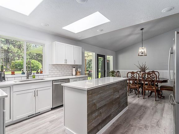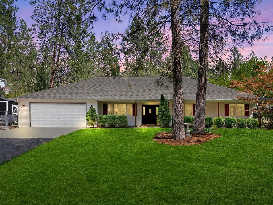 Situated on nearly 2.5 acres, you will find this beautifully cared for & completely updated Colbert Rancher. Boasting a total of 5 bedrooms, 3 bathrooms, & over 3500 sqft. On the main floor, you are welcomed by high ceilings in the family room, a cozy fireplace, & a completely new spacious kitchen w/eating space. The primary bedroom features skylights & a full spa-inspired bath. On the lower level, you will find a large recreational room & additional 2 bedrooms. Relish in the peaceful, large, fenced backyard while you enjoy summer BBQs on your covered patio & fun by the firepit. Time for school? The fence backs up to a trail leading straight to Colbert Elementary! Full of updates (2022) throughout, a 10x12 garden shed, whole-home security system, and central AC. Located near all the local schools - easy walk to Colbert Elementary, under a mile to Mountainside Middle School, & 2.5 miles to Mt Spokane HS. With the large lot, ideal location & loaded with updates, this home is sure to tick all the boxes!