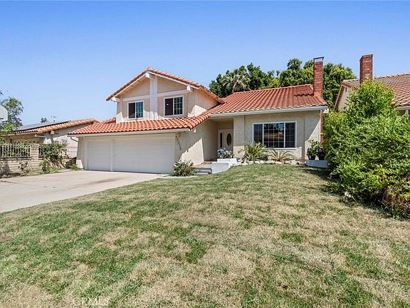 Discover this beautifully remodeled tri-level home in sought-after Granada Hills, offering the perfect blend of modern elegance and family comfort. Boasting 5 spacious bedrooms and 3 updated bathrooms across 2,769 square feet, this residence sits on an expansive nearly 7,500 square foot lot. The inviting living room welcomes you with soaring vaulted ceilings, wood-style flooring throughout, and a charming wood-burning fireplace, seamlessly flowing to a formal dining area highlighted by a custom chandelier—ideal for hosting memorable gatherings. The contemporary kitchen is a chef’s dream, featuring crisp white cabinetry, quartz-style countertops, stainless steel appliances, and a sunlit breakfast nook overlooking the backyard. Upstairs, the luxurious primary suite showcases a remodeled en-suite bath with high-end finishes, modern fixtures, and a walk-in closet, while additional bedrooms and a remodeled hall bath offer flexibility for family, guests, or a home office. Downstairs, an extra-large bedroom with an adjacent full bath is perfectly suited for guests or multi-generational living. Step outside to a private backyard oasis with a spacious tiled patio, wood cover, mature fruit trees, and ample room for entertaining, gardening, or relaxation. Completing this ideal package is a three-car garage with abundant storage, plus easy access to shopping, dining, and transportation. Experience modern comfort, space, and style—make this move-in ready home yours today!