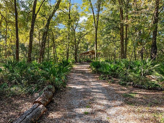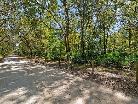 Discover your peaceful sanctuary in this meticulously maintained 3 bedroom 2 bathroom home nestled on 6 completely fenced acres of a beautiful mix of cleared land and natural woodland. Upon entry into the residence from the expansive deck, you will be overwhelmed with the abundance of warmth and comfort stemming from the newer luxury vinal plank floor carefully laid throughout the home with the only carpet being smartly located in the massive bedroom closets. Natural light flows guiding you to the chef’s dream kitchen boosting tons of cabinet and countertop space along with newer stainless-steel appliances. The intelligent floor plan joins the large dining room to the sprawling living room area creating an enormous great room that will keep the whole family connected. All three bedrooms are good size with the split primary bedroom offering a walk-in closet, a dual sink vanity, and a separate step in shower. As nice as the home is, outside is where this property really shines. As you enter through the super convenient solar powered gate, you can take a right towards a massive RV/5th wheel cover offering 50 amp service, water, and a tie into the 3 year old septic system for storage or in-law/guest space. Heading straight up the driveway will open onto a gravel drive turn around that connects the home with an additional two covers large enough for a 35 foot RV and an additional fifth-wheel/tractor/lawnmower/boat. Attached to those covers is an enclosed office or storage room with power and another carport storage area for a grand total of 2 RV covers, 1 fifth wheel or boat cover, and 4 covered parking areas for vehicles. As if that was not enough, behind the carport is a covered workshop area and 2 large nearby sheds. In addition to the entire 6 acres being fenced, there is a smaller fenced in area off the screen patio perfect for smaller pets. Included are less than 2 year starting of apple trees/grapefruit/clementine trees and 2 metal garden planter beds for any gardening needs. Can’t miss the 10,000 gallon above the ground pool to enjoy the Florida hot summer days and cool off. Pool also features a custom deck and privacy wall if the surrounding forest is not enough. Come let this property take your breath away.