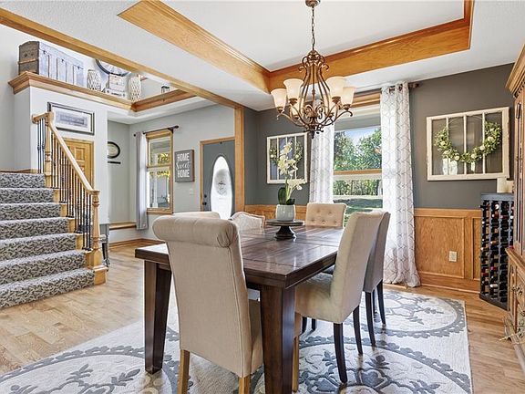 Welcome to this beautifully maintained two-story home located in the sought-after TimberLakes subdivision, which is located just out the city limits of Bonner Springs. The open main level features rich hickory floors, granite and silestone counters, refinished kitchen flooring, and newer stainless appliances including a new oven, microwave, and dishwasher in 2024. Enjoy the bright four-season room with vaulted ceiling and walls of windows overlooking the treed backyard. Upstairs you’ll find four bedrooms, three baths, and a convenient laundry room. The finished walkout basement offers a fifth bedroom, full bath, and spacious entertainment area with custom walnut bar and fireplace. Step outside to relax by the enclosed patio with an impressive outdoor fireplace and water garden. Recent updates include new carpet, paint, front siding, kitchen refinish and master shower remodel. The home features a water softener, in ground sprinkler system and a 3 yr old water heater. Located in the award winning Basehor-Linwood school district, this friendly neighborhood offers a lake, walking trails, playground, and fun community events! You don't want to miss this opportunity!