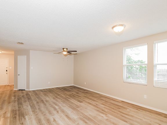 Out back, a concrete patio opens into a fenced yard, a flexible outdoor area that can be enjoyed as-is. The community adds to the appeal with amenities such as green spaces and a playground nearby. This home also features smart-home conveniences including a smart lock and smart thermostat. With its spacious layout, practical finishes, and community perks, this Justin home balances comfort and convenience throughout. Apply now!