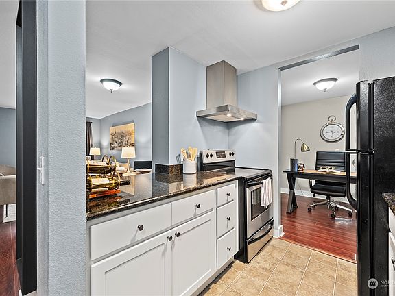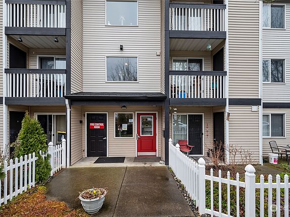 Super Cute and Move in Ready Including Most of the Furniture! Uniquely efficient floorplan featuring 1 bed 1 bath AND a wonderful Flex Room perfect for Den, dining, Yoga/workout, or office space. Recent Updates inlcude designer paint, Laminate floors, Primary bedroom closet Shelving system, Walk-in Pantry Shelving, Remodeled bathroom with tile, new shower plumbing, new bath fixtures, new tub. Upgraded door frames with accent trim. Enjoy morning coffee or afternoon wine on the cozy balcony which boasts additional storage space! In Unit Laundry with Washer/Dryer included..Located Close to Lake Tye, Parks, Bus routes, shopping, easy freeway access. FHA approved. Dogs/Cats ok under 45lbs. No Special Assessments!