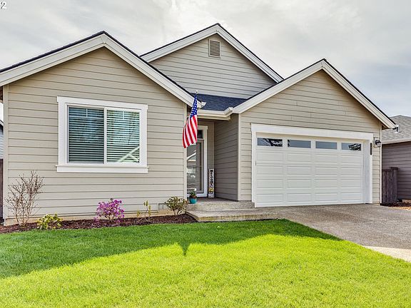Come enjoy this one level living located at Campanella Estates in Estacada. This 2020 new construction home offers 3 bedrooms, 2 bath & 1,679 sqft of living space. Inside you'll find an elongated entry, high ceilings, large kitchen w/island open to the living room, dining area, laundry room w/custom cabinets, guest bedrooms separate from master, huge master with his/her sink and walk in closet, fully fenced back yard with patio area and concrete entry, heat-pump, and more.