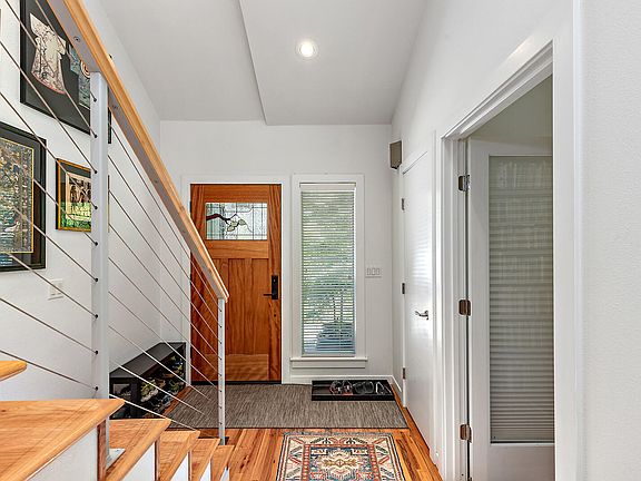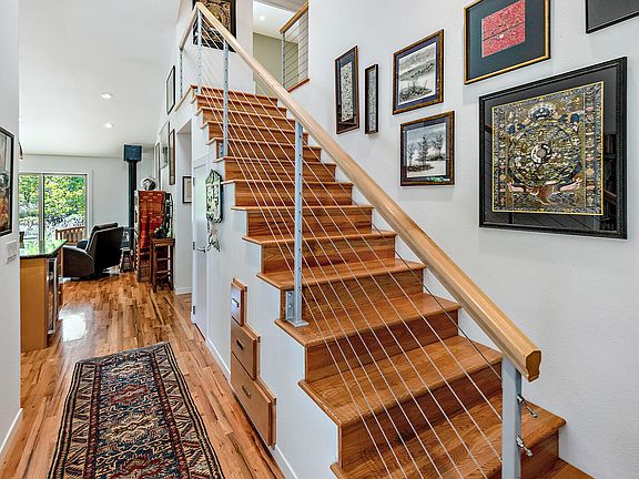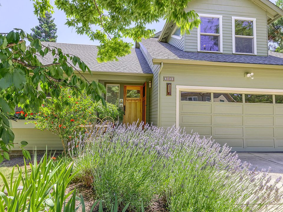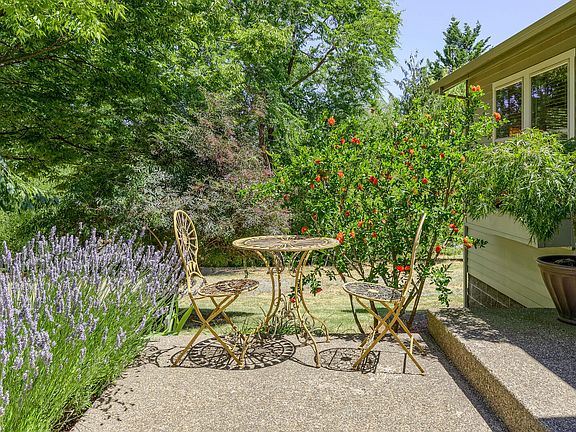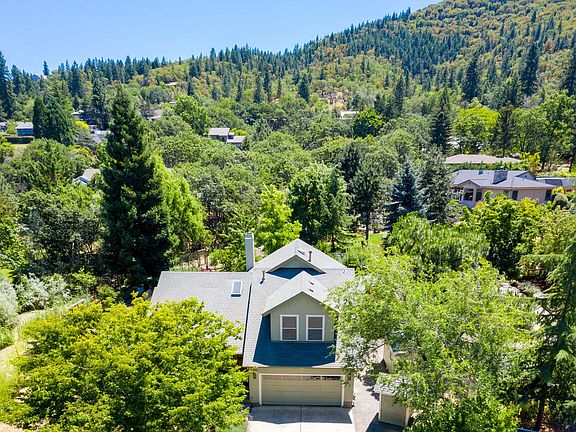 Ashland Paradise on a Lush Half Acre with Wonderful Mountain Views! This gracious, light-filled home with soaring vaulted ceilings, expansive hardwood floors and a great room plan centers around a gorgeous contemporary kitchen, granite counters, custom cabinetry and high-end fixtures. There are two nice bedrooms, one bath and an office/den/ on the main level, and a private master suite with well-appointed bath, view deck and large guest bedroom upstairs. You'll cherish the tranquil backyard setting from the extra-large covered deck, and you can meander the garden paths through mature trees and bountiful plantings. And there is truly a bounty to behold--an all organic garden offers fruit trees, raised beds, flowering plants and vegetable plots. Abundant water too--city water for the house and TID and shared well for irrigation. The property is bordered along one side by a babbling brook, large trees and riparian conservation zone. A Garden Oasis right in the heart of Ashland!