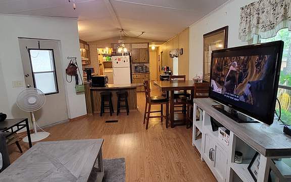 This 2 bedroom/2 bath open concept, split floor plan home has a wonderful very large enclosed front porch and is located on a quiet cul de sac. The rooms are all generous in size as is the lot the home sits on. The master has an ensuite bath and the 2nd bath is large as well. The spacious laundry room/pantry sits just off the large kitchen (which also has a breakfast bar) for ease of doing laundry and unloading groceries. There is also a carport and plenty of additional parking available for guests.This home is located in Palm Ridge and is centrally located. The community has lots of amenities such as a newly remodeled beautiful clubhouse, heated pool with spa, dog park, shuffleboard courts and more. It is also close to The Villages and several quaint downtown areas such as Mt. Dora, Tavares and of course Leesburg, all of which offer dining, shopping and a variety of festivals and events. There are many great outdoor places to experience as well. It is a short drive to many of Florida's stunning springs, the beach or about 2 miles down the road is a public boat ramp for Lake Griffin (part of the Harris Chain of Lakes). If it's big city action you are looking for Orlando is only about an hour away. Florida living at it's best. Make an appointment to see this home soon before it is gone! At this price it won't last long!