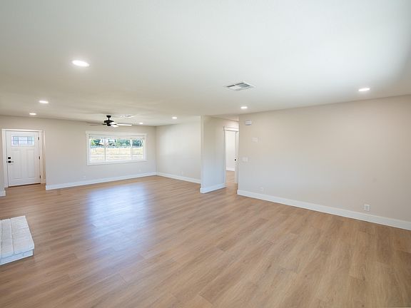 Beautifully remodeled West Palmdale ranch home. The interior is remodeled from floor to ceiling. Home has an open floor plan making a bright and airy feel. New windows and recessed lighting throughout. Fireplace in the living room. Kitchen has been fully remodeled with new cabinets, stainless appliances, and quartz countertops. Three good sized bedrooms, all with ceiling fans and recessed lighting. Master has barn door closet doors. Master bath with walk in shower. Hall bath has a shower/tub combo. Oversized 2 car garage with new water heater and cabinetry. Home sits on a corner lot with 2.5 acres of land. Crossed fenced immediate yard with covered patio and landscaping provides privacy. Two room Tack Room/Storage. Lot does have fenced off areas, possibly for your animals! Brand new septic tank. Prime, desirable location on PAVED streets near the mall. Easy freeway access.