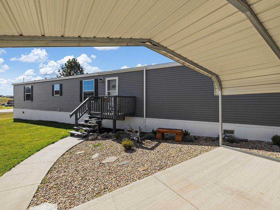 Back on Market--no fault of house! Welcome to this beautifully upgraded 2018 Highland home! This residence combines the affordability of manufactured construction with the sturdiness and appeal of a stick-built home as the walls are of drywall construction not panels. You'll also benefit from the 2024 installed new siding and roof, offering both curb appeal and long-term peace of mind. The living, dining, and kitchen areas are inviting and open suitable for everyday life and entertaining. The kitchen has plentiful cabinetry, durable countertops, an updated sink and updated appliances. You'll love the enlarged laundry room with barn door. Three comfortable bedrooms provide flexibility for families, guests, or a home office and two full bathrooms. The primary suite enjoys convenient access to a full bath, giving homeowners a private retreat. Woodland Meadows is located just east of Custer and enjoys city water and sewer and a great view of the fireworks and hot air balloons. Lot rent is $450/mo and covers the common street maintenance. And thanks to the new roof and siding, you’ll enjoy enhanced insulation, weather resistance, and reduced maintenance for years to come. Skirting is a high end product. There's a carport, two decks and a shed that all stay as well! This is economical living in Custer.