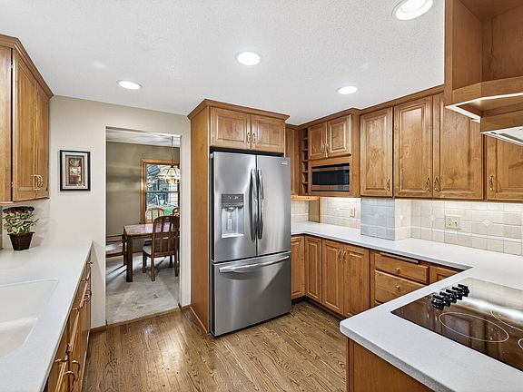 Welcome home to this great 4 bed, 3 bath 2 story in highly desirable Plymouth/Wayzata schools! Main level has beautiful original hardwood flooring, a generous size living room, formal dining room and a kitchen with updated cabinets, new in 2023 stainless steel appliances, corian counters and peninsula with breakfast bar that overlooks informal dining and a family room with gas fireplace. Walk out to a generous size deck with trees and privacy! Main level also features an office and laundry room! Four bedrooms up, include a primary with private 3/4 bath. Lower level has a second family room with wood-burning fireplace and tons of unfinished space for storage or to add additional finished square footage. Two-car attached garage and all new Andersen windows in 2018!