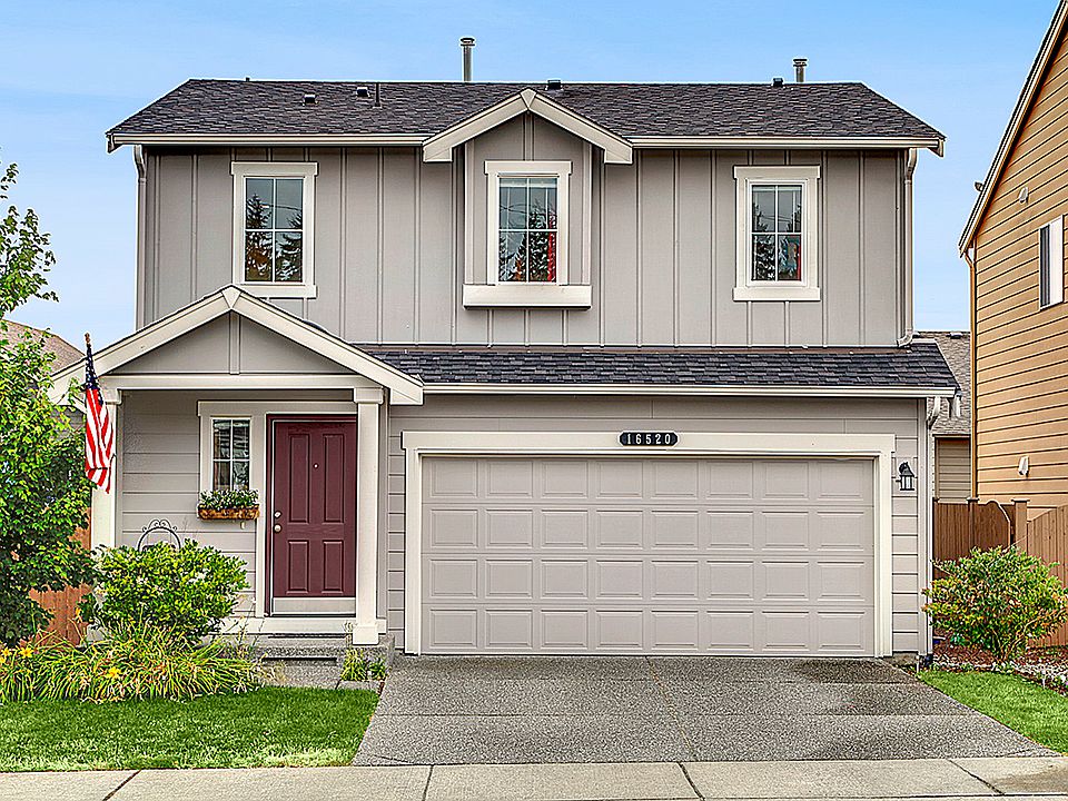 Amazing Camden Meadows three bed home is ready for move-in and situated on quiet circular drive. The spacious and enticing living room opens to the well-appointed kitchen with tiled counters, backsplash, breakfast bar, and additional eating area. Easy dimmer controlled lighting sets the scene. Upstairs the luxurious master has double closets and en suite bath. Two additional bedrooms share a full bath. Utility room includes room for storage, plus additional attic space. Entertaining is a joy with the back patio with covered hot tub and space for gardening. Two car finished garage with fan is perfect for additional hobby space. Community park and close to local schools. Enjoy shopping and dining at Mill Creek Town Center. Easy access to I-5, 405 and Hwy 9.