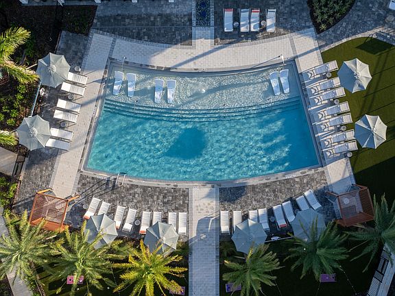 Resort-style poolUpscale townhomesPickleball courtCabanas and daybedsFitness studio