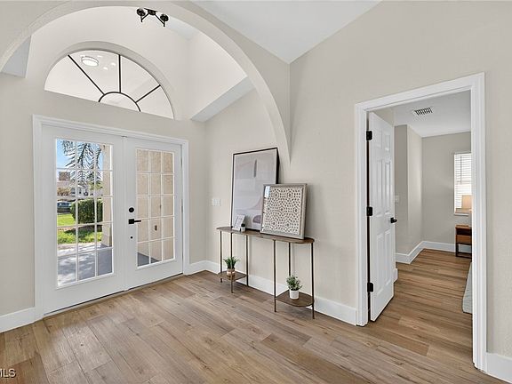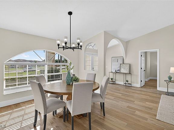 1% Lender credit to buyers with preferred lender! Fully renovated Wellington Lakes pool home with a 2023 roof and a recently resurfaced pool. Light and bright with vaulted ceilings, fresh paint, wood-look floors, and new fixtures and fans throughout. Brand-new kitchen features white shaker cabinets, quartz counters, stainless appliances, a breakfast bar, and a sunny nook that opens to the family room. Split plan adds formal living and dining for flexibility. The private primary suite has sliders to the lanai and an updated bath with new vanity, lighting, and hardware. Electric storm shutters throughout the house provide easy storm prep. Oversized screened lanai backs to lush landscaping. Interior laundry and two-car garage. Sidewalk community with lakes and a heated neighborhood pool, minutes to HealthPark, shopping, dining, and Fort Myers beaches.