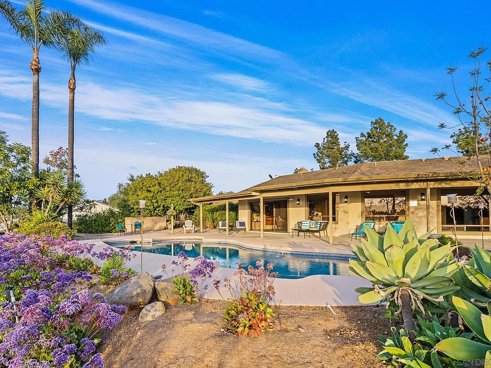 Freshly renovated from top to bottom! This classic Ranch-style home has been transformed with brand new floors, a modern kitchen, stylish baths, paint and elegant light fixtures! As you enter, be greeted by soaring vaulted ceilings, leading your gaze to breathtaking panoramic views framed by expansive picture windows. Experience the perfect balance of spaciousness and privacy with generously sized bedrooms. The flat backyard, featuring a sprawling covered patio, overlooks a sparkling pool, delicious fruit trees, views, more views and access to the horse trails. Award winning Poway schools