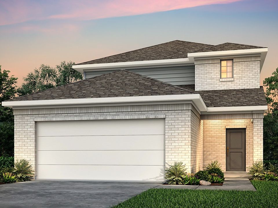 Kitchen adjacent to dining area overlooks spacious living area making this floor plan perfect for entertaining. Upstairs secondary bedrooms and owner's suite with bath and walk-in closet. Optional upgrades include separate garden tub & shower in master bath and optional 5' garage extension.