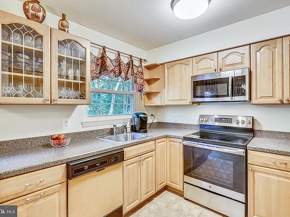 Beautiful, contemporary style garage townhouse with high ceilings and a skylight over the main level. Beautiful wood flooring and a double sided fireplace between the living and dining rooms for your enjoyment. You can also relax and enjoy your spacious deck overlooking the trees. Upper level features three bedrooms with two full bathrooms. Lower level offers a spacious room, a fourth bedroom, laundry room and plenty of storage. Great table space kitchen features updated appliances too.