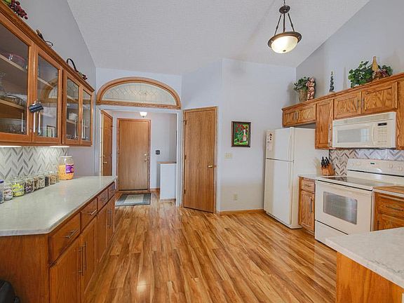 One level living! Immaculate 3 bedroom, 2 bath rambler style townhome. Exceptional townhome has, 2 kitchens, 2 living rooms, 2 full baths & main floor laundry. Tile backsplash, stone tops, vaulted ceiling, updated bathrooms, newer floors & more. Enjoy wildlife and private DNR lake views from your deck or walk the trail to Lake Waconia & downtown.