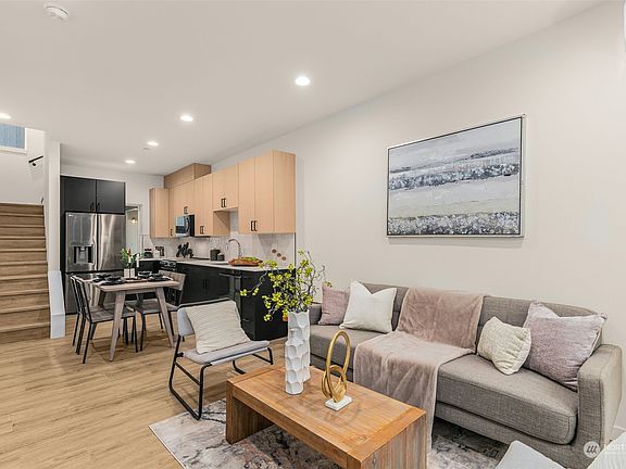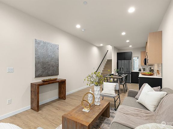Greencity Homes is offering the only 2-bedroom available at The Bend collection in Green Lake. On a quiet street with a serene park right across the street, come home to an open floor plan boasting natural finishes, black LG stainless appliances & expansive windows for natural light. The guest bed is equipped w/ private bath & convenient laundry room w/ additional storage. The entire upper level is reserved for a luxury primary suite encompassing a walk-in closet, dual-sink vanity, rain shower and vaulted ceiling! Above it all, unwind on your sun-soaked roof deck w/ views. Indulge in all that this popular location offers – eateries, coffee & three popular parks! Commuting is a breeze w/ Northgate Light Rail & quick access to I-5/Hwy 99.