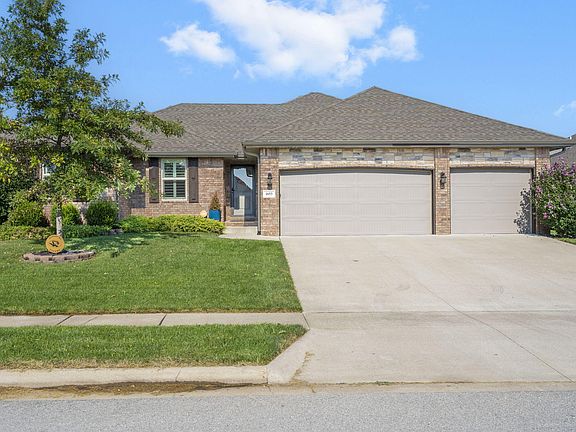 Welcome to Eagle Ridge Estates! This beautiful 3-bedroom, 2-bath home with an office and 3-car garage was built in 2018 and has been well-maintained. The open layout is perfect for everyday living and entertaining, featuring tall ceilings, a kitchen with granite countertops, an island, and stainless steel appliances. The living room is cozy with a stone gas fireplace, while the walk-in pantry and spacious mudroom off of the laundry area helps keep everything organized. Step outside to a covered patio and landscaped yard in one of Nixa's most popular neighborhoods!
