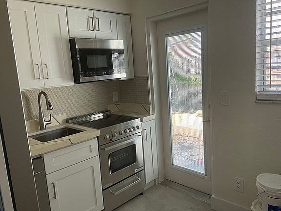 Triplex in Coral Ridge Isles is in a great location close to beaches and I95, good schools. The unit is very private, located in the back. It feels more like a single family home than an apartment. This unit is like new, beautiful, modern and stylish. Beautiful porcelain tile with thin grout line. The kitchen features a quartz counter top and all brand new stainless steel appliances never used which include dishwasher, convection oven, freezer on the bottom refrigerator. It has a private backyard with a shed to keep your bikes. The unit has a laundry room with a stackable washer/dryer. The bedrooms have large closets and nice windows over looking the garden. The bathroom is modern and beautiful with lots of light, large mirror, glass frameless shower doors, large vanity. Also includes a parking space near the entrance. A pet is allowed.