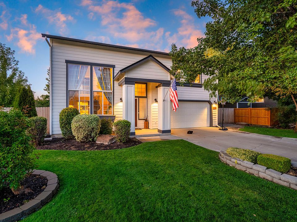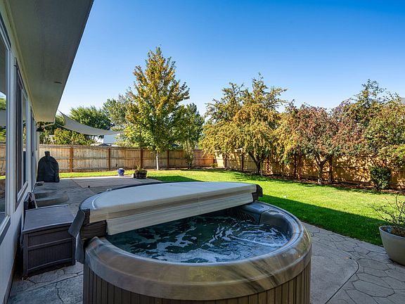 Located just a block from Redmond's Dry Canyon Trail system, this super stylish corner lot home on nearly a quarter-acre offers a blend of luxurious finishes and outdoor living. The spacious floor plan shines with a clean, modern, and bright aesthetic throughout, featuring new interior and exterior paint, a custom tile fireplace, and a renovated kitchen boasting with block counters, a huge island, tile backsplash, and stainless appliances. Major updates include a New HVAC in January 2025 and a New Roof in June 2025. The private backyard is a gardener's paradise with cherry & apple trees, garden beds w/ full drip irrigation system, grapes, berries, a fenced yard, and a relaxing Bullfrog hot tub. Practical amenities include a custom primary closet, an oversized two-car garage, and gated RV parking, all perfectly situated for easy trail access and a superior Central Oregon lifestyle.