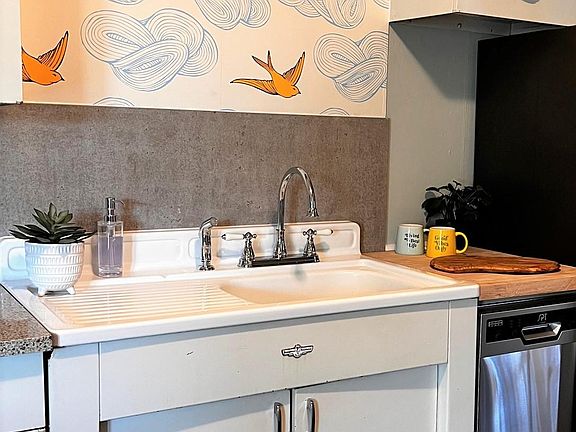 Private fenced yardCraftsman charmHygge and west wallpaperFully furnished covered patioOriginal hardwood floorsNew wood laminate flooring