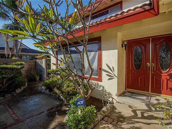 This well maintained 2 story home with a double-door entry rests on a quiet cul-de-sac, perfect for that large or growing family! With over 2,300 sq ft, you'll have plenty of elbow room and then some! It's ready for your personal touches and features a sunken living room w/gas fireplace, copper plumbing, updated electrical, cement tile roof, ADT alarm system, water filtration system in kitchen, double oven, large dining room that leads to a bonus/family room (approx 230 sq ft). Both ¾ baths were partially updated w/grab bars and all bathrooms have updated commodes. There's a bedroom and ¾ bath on 1st floor, perfect for an office or guests. Central heat & A/C, water heater w/circulator pump for faster hot water, inside laundry hookups, exterior painted in 2018. Extra wide driveway and 2-car attached garage w/direct access, Terminix pest and termite service maintenance was until the end of Sept 2019, low maintenance landscaping, large side yard with Gazebo, several Plumeria trees and room for gardening. Private, gated front yard Tranquil back yard with Sago Palm, rose trees