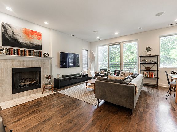 Welcome to this inviting and extra-wide 2-bedroom, 2-bathroom condo in the vibrant West Town. Nestled in the popular East Village neighborhood, this condo offers the perfect location and layout. The open floor plan is perfect for entertaining, featuring a living room with a gas fireplace encased in marble tile and a separate dining area. The kitchen boasts double-stacked custom white shaker cabinetry, Carrara quartz countertops, a subway tile backsplash, and stainless steel appliances. The primary suite includes two professionally organized closets and an en-suite bath with dual vanities, a whirlpool tub, and a separate shower. Enjoy the large back balcony with two points of access, in-unit laundry, and a dedicated parking space. Located on a quiet one-way street, this home is steps away from public transit, parks, restaurants, shops, and all the other amenities that make East Village one of the most sought-after areas in the city!